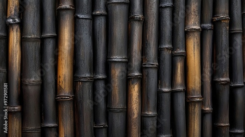 Close-up of Black and Brown Bamboo Stalks