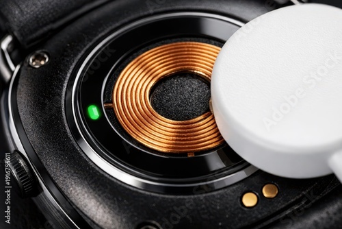 Close-Up of Charging Coil in Smartwatch with Magnetic Charging Pad