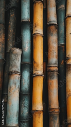 Close-up of colorful bamboo sticks showing