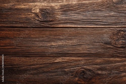 Close-up of dark brown wooden planks, showing wood grain and knots