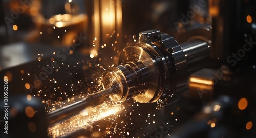 Close-up of metalworking machine sparks flying during operation.