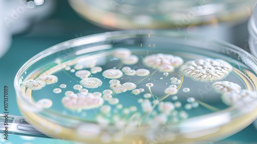 Close-up of microscope slide revealing intricate fungal spores, essential for research on fungal diseases and microbiology studies.