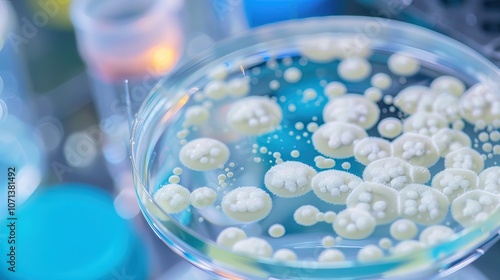 Close-up of microscope slide revealing intricate fungal spores, essential for research on fungal diseases and microbiology studies.