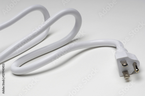 Closeup of plug cord over grey background