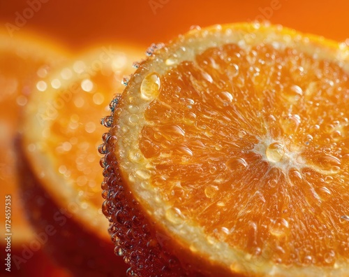 Close-up orange slices with water droplets