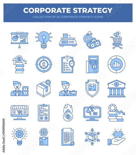 Collection of 25 Corporate Strategy Icons. Business Planning. Marketing. and Finance