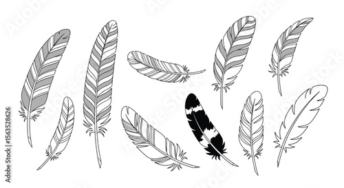 Collection of hand drawn feathers illustrating natural beauty and delicate textures