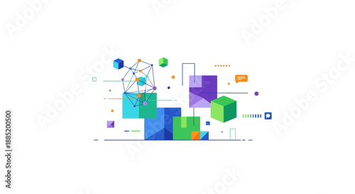 Colorful 3d geometric shapes and graphs on white background for business analytics