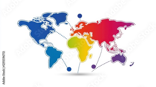 Colorful Abstract World Map with Dotted Lines and Connections
