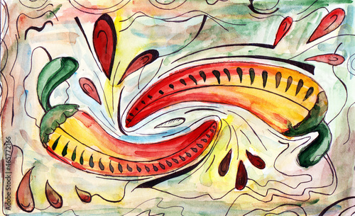 Colorful background with peppers. Illustration for decor.