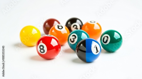 Colorful Billiard Balls on White: A Still Life of Pool Game Numbers