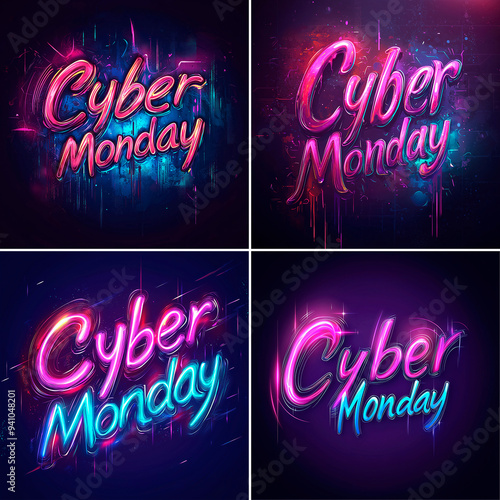 Colorful Cyber Monday neon signs glowing brightly, website advertising, sale advertise, blog banner