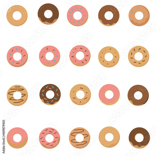 Colorful Donut Icon with Sprinkles Flat Style Set