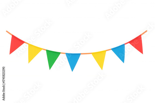 Colorful festival bunting flags hanging on a string, celebrating party event with celebratory pennants