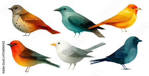 Colorful Illustrated Birds Collection on Transparent Background for Creative Use
