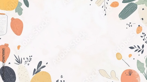 Colorful illustration of fruits and vegetables framing a blank space for design use