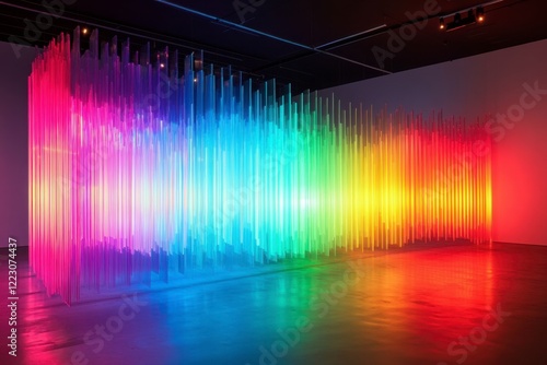 Colorful Installation of Light and Transparency in Modern Art Gallery