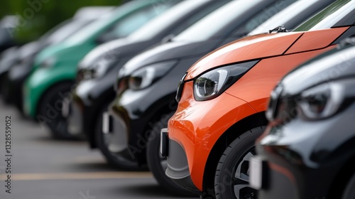 Colorful lineup of compact cars in a parking lot showcases modern automotive design and urban mobility solutions