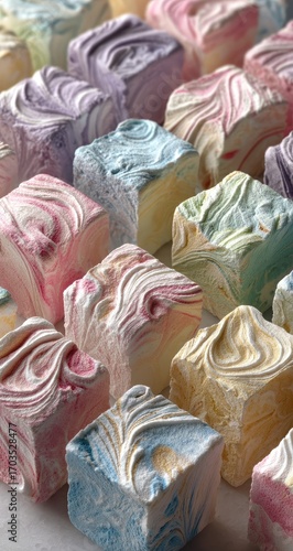 Colorful marbled marshmallow squares