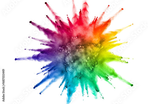 Colorful powder explosion isolated on transparent background vibrant burst of rainbow colored dust particles in air