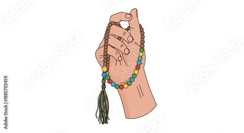 Colorful Prayer Beads (Tasbih) Held in Hand, Spiritual Symbolism