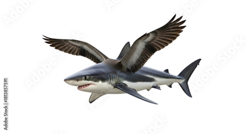 Conceptual shark with bird wings in flight isolated PNG with Transparent Background