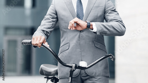 Confident businessman looking at his watch, going to work