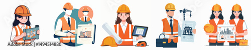 Construction workers wearing safety helmets and orange vests