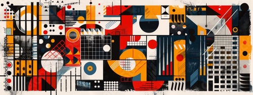 Constructivist patterns with abstract shapes and industrial motifs.