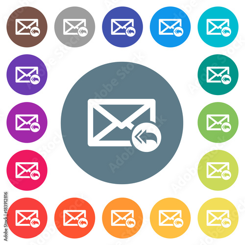 Contact reply to all flat white icons on round color backgrounds