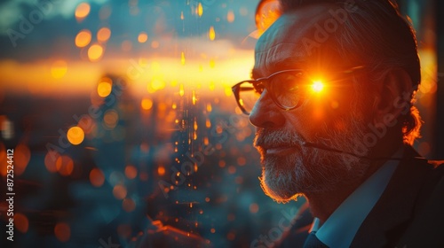 Contemplative Man Watching Sunset through Window - Generative AI