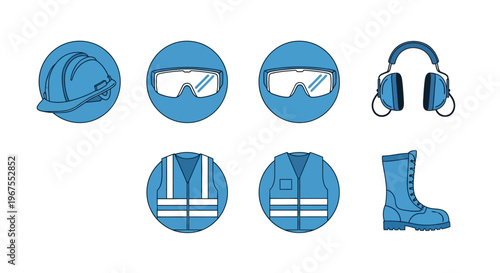 Core Personal Protective Equipment Icons for Workplace Safety on Isolated White Background