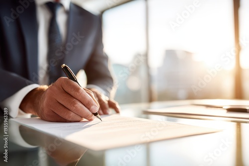 Corporate signing scene: business leader completes contract in a contemporary environment