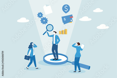 Corporate transparency, integrity or trust, business management with responsibility, financial transparent, legal or agreement for ethic report concept, businessman on magnifying glass transparency.