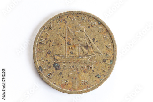 Corroded one drachma Greek coin