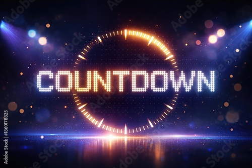 Countdown timer illuminated with LED lights highlighting urgency and anticipation evoking emotions connected to events celebrations and digital technology innovation