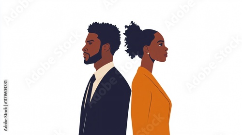 Couple Stands Back-to-Back in Suits: A Portrait of Black Professionals