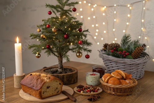 Cozy Christmas Eve Table Setting with Mini Tree and Festive Treats