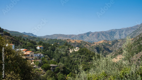 Cretan village in the forest and mountains during the summer
