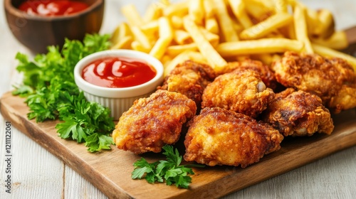 Crispy Chicken Thighs with Fries and Fresh Greens