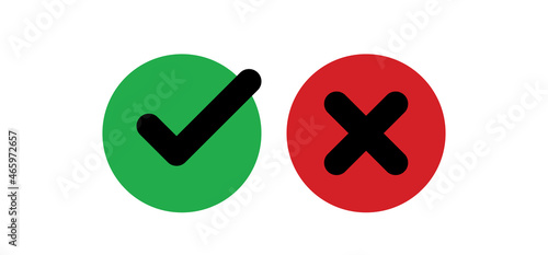Cross and check mark icons, vector buttons. Checkmark tick and x.