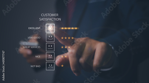 Customer satisfaction experience with five star icon and excellent.