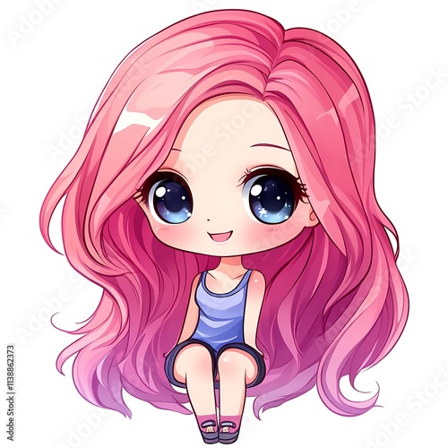 Cute anime girl with pink hair. Kawaii character design.