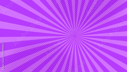 Cute cartoon comic abstract background of purple gradient sun rays with halftone dot element