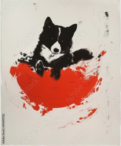 Cute Shiba Inu Posing on Belly, Minimalist Ink Painting Style Generative AI