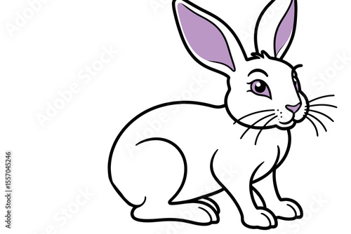 Cute White Rabbit Illustration for Kids- Cartoon Bunny with Purple Ears- Perfect for Coloring Pages and Childrens Books- Adorable Animal Clipart