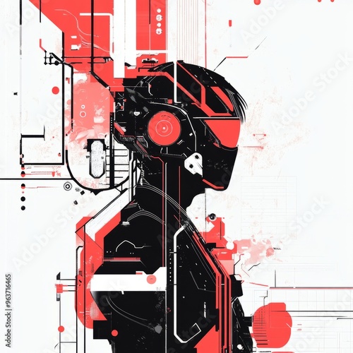 Cyberpunk Biker Dreamscape: Minimalist Digital Art in Red, Black, and White