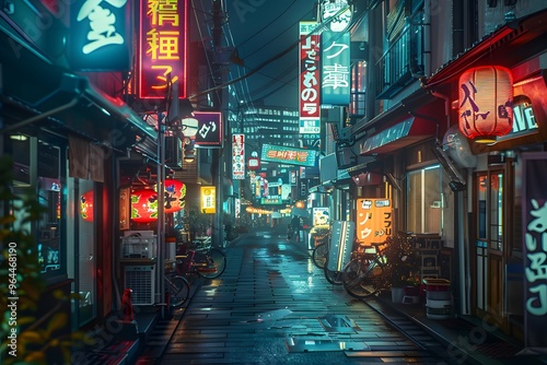 Dark street in cyberpunk city, gloomy alley with neon lighting