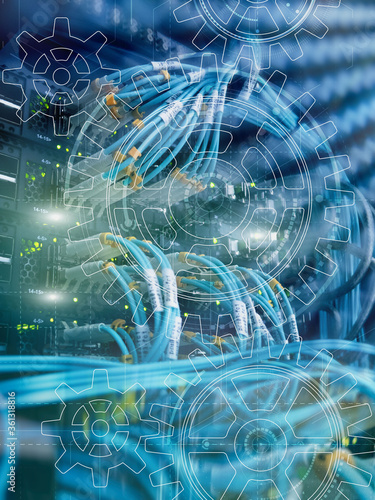 Data loss prevention. DIsaster recovery. Supercomputer blurred background. 2020.