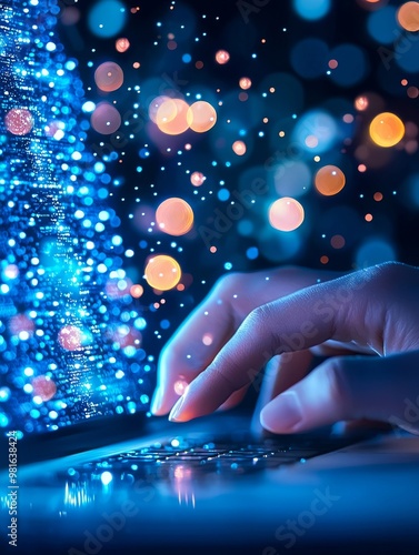 Data technology interface, high tech with blue and purple light.